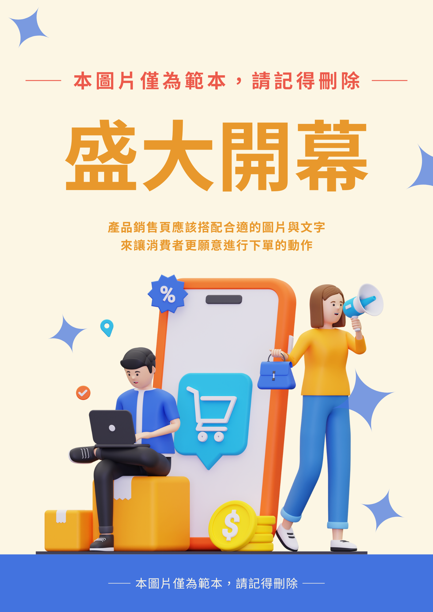 特價中 🔍 簡單商品範例 (熱門 – 無圖庫)NT$999 原始價格:NT$999。NT$699目前價格:NT$699。 這是一款展示用的範例商品,為展示電子商城內容而設計,展示如何進行清晰簡單的商品描述,並且以條列形式說明其主要優點。 商品特色: 高品質材質:採用優質材質製作,保證產品耐用且安全。 實用設計:設計符合現代需求,無論家庭或辦公使用都能發揮出最佳效果。 多功能應用:適合多種場景使用,滿足您的不同需求。 環保選擇:產品製造過程考慮環境影響,使用可持續材料。 時尚外觀:簡約且時尚的外觀設計,適合各種風格空間。 簡單商品範例 (熱門 - 無圖庫) 數量 加入購物車 描述 這邊是你可以放些商品圖片或是文字介紹的區塊 請記得將以下這些內容刪掉換上專屬於你的產品資訊 相關商品 特價中 可變商品範例 (熱門) NT$999 原始價格:NT$999。NT$699目前價格:NT$699。 選擇規格 此產品有多種款式。 可在產品頁面選擇選項 特價中 外部商品範例 (熱門) NT$999 原始價格:NT$999。NT$699目前價格:NT$699。 馬上購買 特價中 組合商品範例 (熱門) NT$699 查看商品 特價中 簡單商品範例 (熱門 – 有圖庫) NT$999 原始價格:NT$999。NT$699目前價格:NT$699。 加入購物車